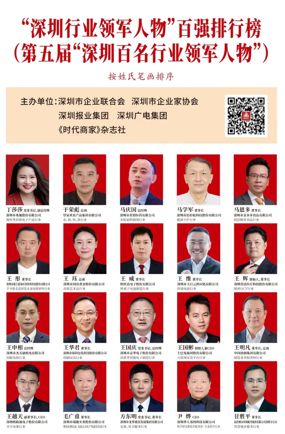祝贺!瑞能股份董事长毛广甫荣获“深圳百名行业领军人物”称号 -多宝体育官方网站app下载发表时间:2024-01-10 09:35 近日,按照国家和大湾区严格要求,依据“党建引领、创新力、贡献力、影响力、社会责任”六大标准体系,历经数月的“深圳百名行业领军人物”评选榜单正式发布,深圳市瑞能实业股份有限公司董事长毛广甫荣膺上榜。